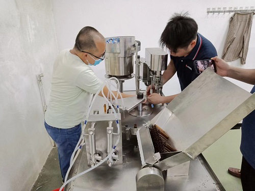 2022年6月15日,外省設(shè)備調(diào)試地點(diǎn)福建省泉州醫(yī)學(xué)高等專科學(xué)校,我廠安排技術(shù)人員周武前往,對其購置的口服液灌軋一體機(jī)等設(shè)備進(jìn)行了安裝調(diào)試,隨后指導(dǎo)學(xué)校相關(guān)老師對設(shè)備的使用和實(shí)際操作,并就設(shè)備的維護(hù)保養(yǎng)及注意事項(xiàng)做了詳細(xì)的講解。