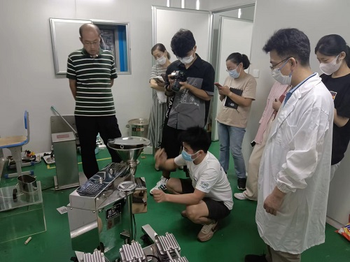 2022年9月1日,外省設(shè)備調(diào)試地點山東青島職業(yè)技術(shù)學院,我廠安排技術(shù)人員周武前往,對其購置的口服液洗烘灌軋聯(lián)動機組,薄膜包衣機等設(shè)備進行了安裝調(diào)試,隨后指導學校相關(guān)老師對設(shè)備的使用和實際操作,并就設(shè)備的維護保養(yǎng)及注意事項做了詳細的講解。