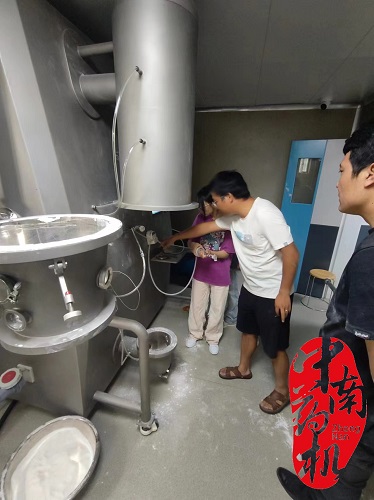 在昆明衛(wèi)生職業(yè)學院的實訓室,新購置的FL-5型流化床制粒機在技術(shù)人員的調(diào)試下,開始運行。
