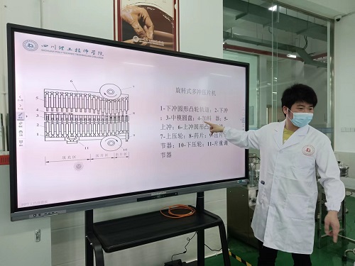 2022年4月23-26日,外省設(shè)備調(diào)試地點(diǎn)四川理工技師學(xué)院溫江校區(qū),我廠安排銷售經(jīng)理李玉冰、技術(shù)人員周武、王凱東前往,對(duì)其購(gòu)置的壓片機(jī)、篩片機(jī)、濕法制粒機(jī)、口服液洗烘灌軋聯(lián)動(dòng)機(jī)組進(jìn)行了安裝調(diào)試,隨后指導(dǎo)學(xué)校相關(guān)老師對(duì)設(shè)備的使用和實(shí)際操作,并就設(shè)備的維護(hù)保養(yǎng)及注意事項(xiàng)做了詳細(xì)的講解。
