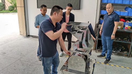 5月24日下午,客戶帶著物料來(lái)我廠試機(jī),針對(duì)物料的特性,技術(shù)人員使用CS系列粗碎機(jī)對(duì)物料進(jìn)行粉碎,其成品的效果,客戶看后很是滿意,隨后沈經(jīng)理又向客戶介紹了我廠生產(chǎn)的設(shè)備,對(duì)設(shè)備的使用性質(zhì)等作了講解。