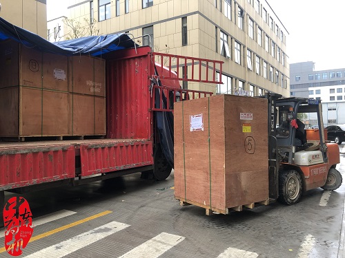 生產(chǎn)廠區(qū)內(nèi),發(fā)貨班組正緊張有序的操作著行車,將發(fā)往鄭州醫(yī)藥健康職業(yè)學(xué)院的設(shè)備進(jìn)行裝車、固定。質(zhì)檢人員對(duì)已打包設(shè)備的各部件進(jìn)行著出廠前的檢查和清點(diǎn),以確保此次發(fā)貨能圓滿結(jié)束,并安全交付河南客戶現(xiàn)場(chǎng)。