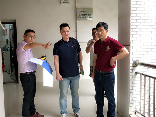 2021年6月30日,由總經理何靖之帶隊,銷售部經理、查勘員一行四人,前往婁底職業(yè)技術學院進行了現(xiàn)場勘查,本次勘查主要就教學場地的設置、分布及教學設備的擺放開展了測量繪圖,并就1+X職業(yè)技能培訓建設進行了商討,現(xiàn)場根據(jù)內容初步擬定方案,形成合理的規(guī)劃。